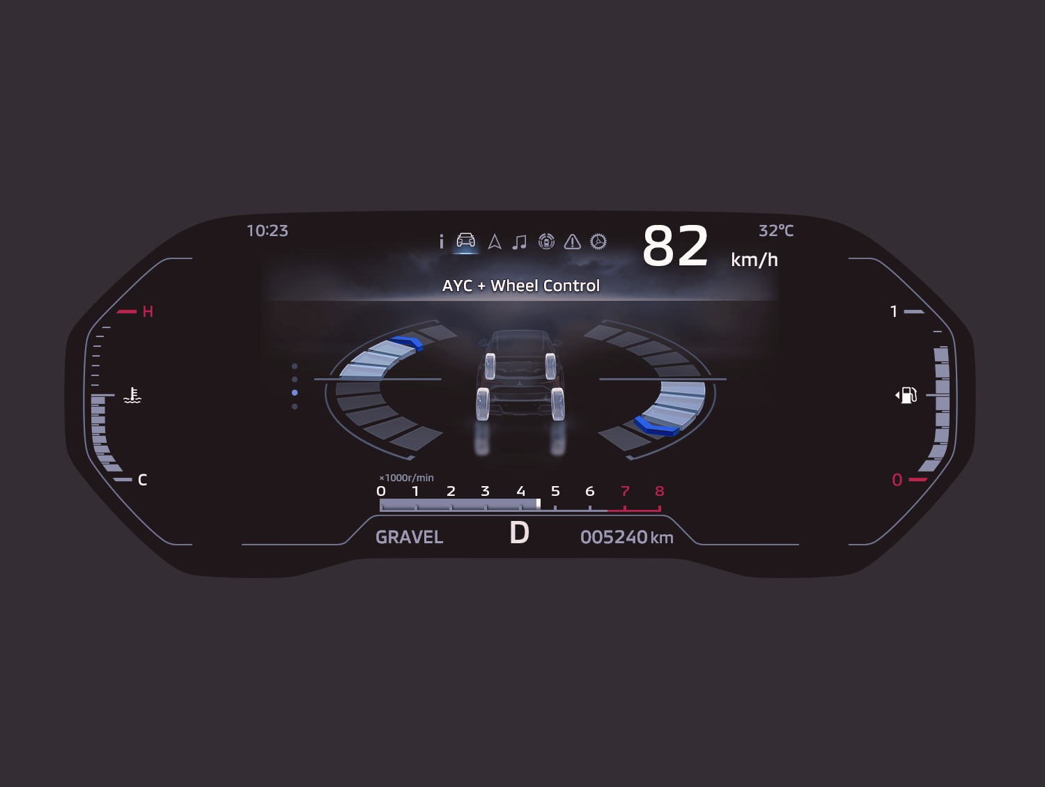 Hỗ trợ người lái giữ xe ổn định khi di chuyển trong điều kiện đường trơn trượt & khúc khuỷu, tự tin kiểm soát khi vào cua chính xác, mượt mà và an toàn. Tính năng còn được hiển thị trên đồng hồ kỹ thuật số 8-inch sau vô lăng, giúp người lái dễ dàng theo dõi.