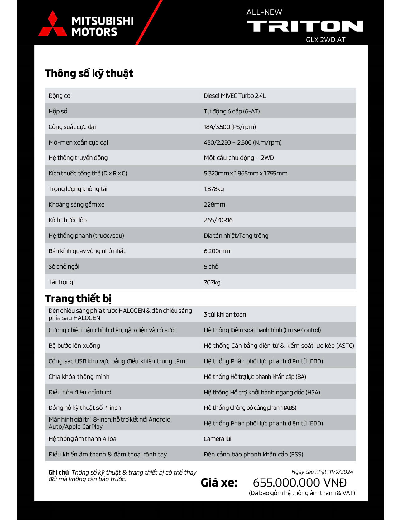 TRITON 2WD AT GLX (bản Tự Động Tiêu Chuẩn 1 cầu)